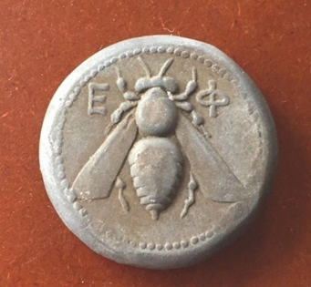 Ephesus and its bee sacred to Artemis on a silver tetradrachm, ca. 350-340 BCE.