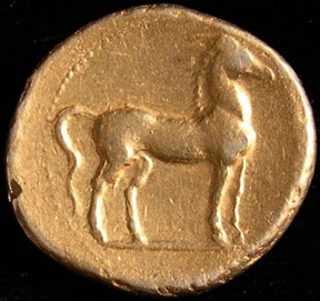 Carthage (present-day Tunisia, North Africa) by a horse as on this electrum stater, ca. 310-290 BCE.