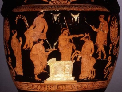 Iphigenia at the moment of substitution for a deer. Volute crater, ca. 370-355 BCE. British Museum.