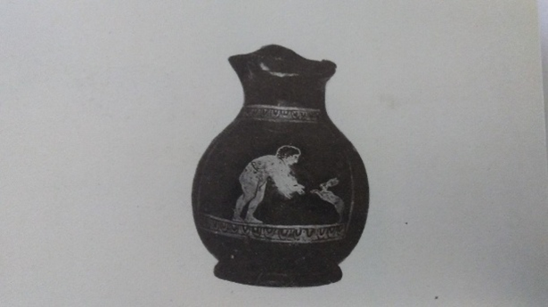 On a Boeotian toy oinochoe a boy plays the lyre for the amusement of his cat that sits on a small stool and listens attentively. Antikensammlung, Berlin.